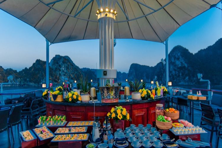 Lunch will be served in the La Espacia Restaurant while Paradise Grand Cruises to the islands and islets of stunning Lan Ha Bay.